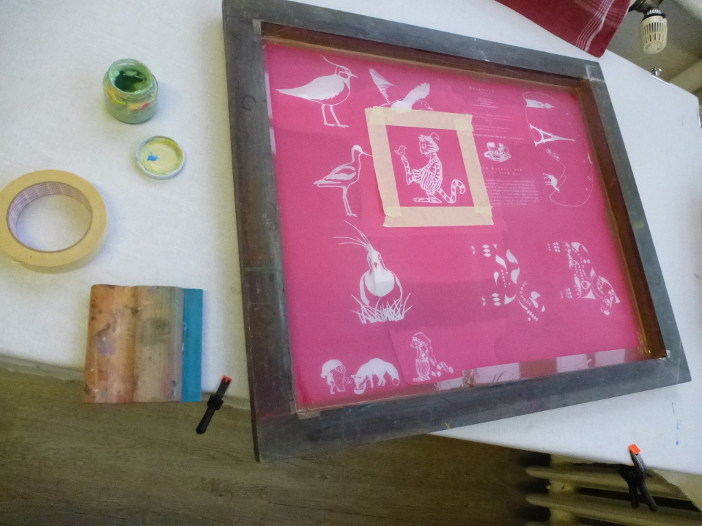 Wir richten uns unsere Arbeitsplätze ein und bereiten unsere Siebdruckrahmen vor.